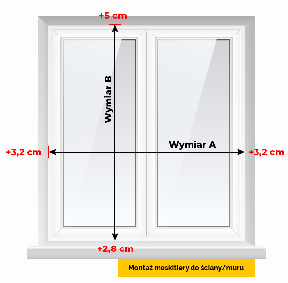 Zmierz szerokość wnęki - wymiar A - oraz dodaj 6,4 cm (jest to suma szerokości profili bocznych moskitiery) - należy pamiętać, że wprowadzony wymiar będzie wymiarem moskitiery na gotowo.