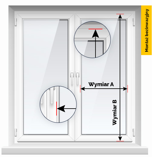 2. Zmierz wysokość (B) skrzydła okna.