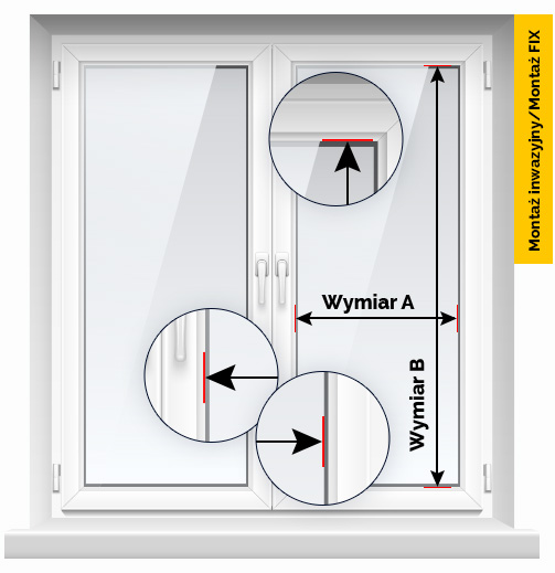 Montaż inwazyjny to bezpieczny trwały montaż, który wymaga wiercenia w framudze okna. Natomiast w przypadku montażu FIX stosuje się bezinwazyjne uchwyty naklejane na ramę okna. Plisa nie wystaje poza obrys ramy okiennej. Szerokość listwy przyszybowej musi wynosić około 1 centymetr na płasko.