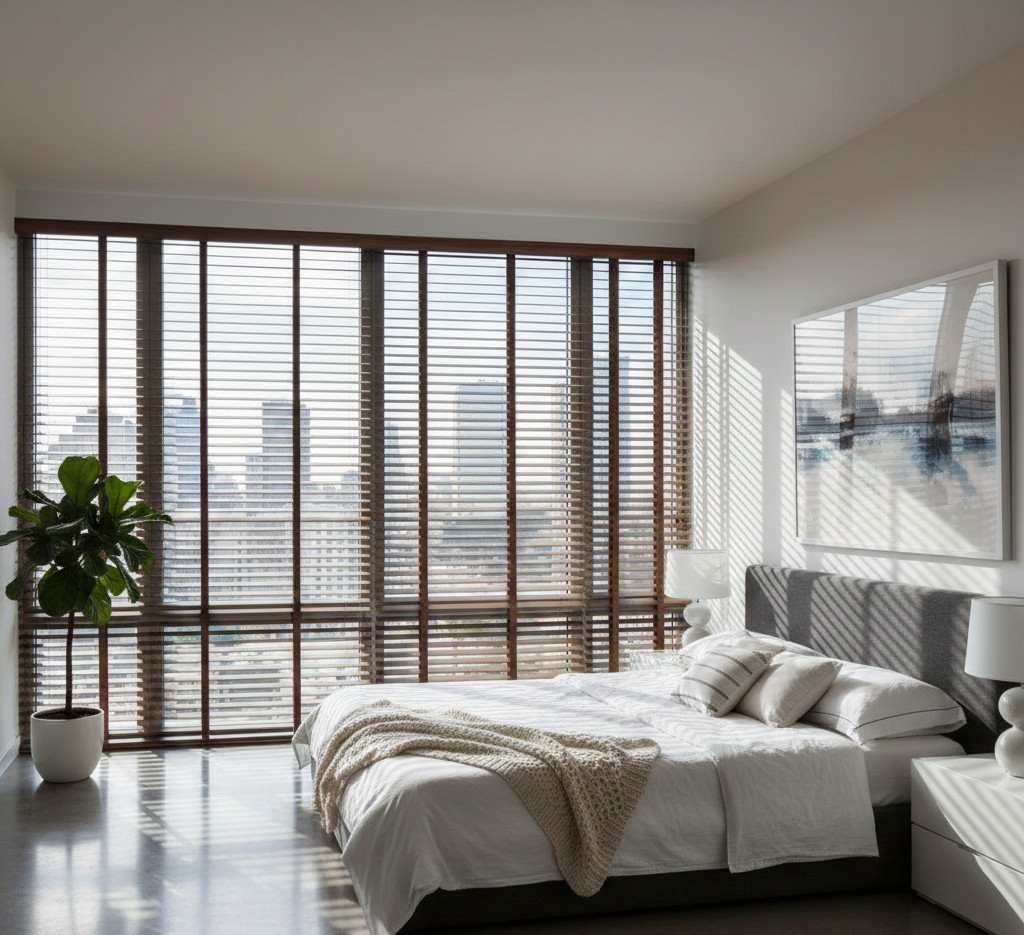 Zastosowanie żaluzji drewnianych 50 mm – do jakich wnętrz pasują?